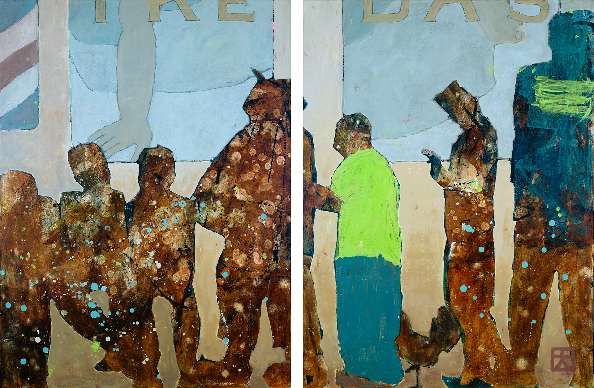 ふりかえると戸外制作で自然を観察するところから始まり、人体構造の講義を受けたことがきっかけで人に目を向けるようになりました。大好きな相撲をテーマにした作品が多いのですが場所中の取組みのスケッチからアイディアが生まれることが多いです。日常の中でも電車の乗客を観察、スケッチしながらその方々の「物語」に想いを馳せることが作品につながったりもします。