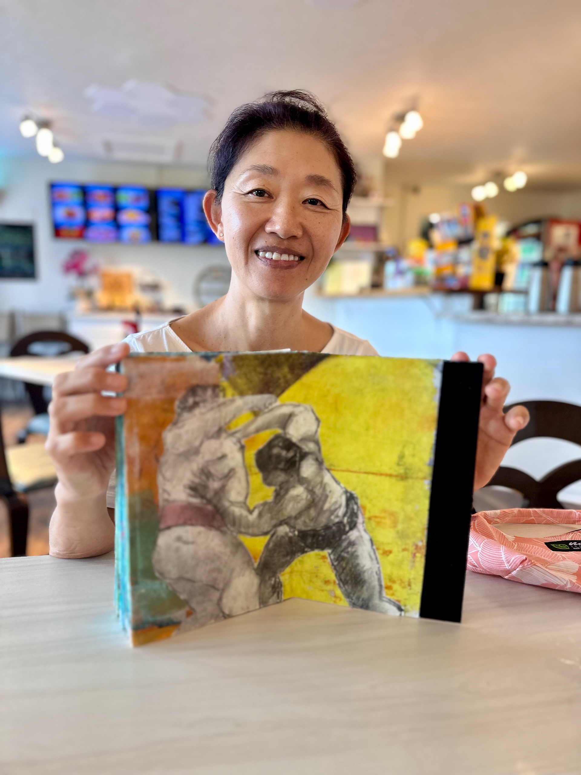 It all started with enrolling in a class studying human anatomy for art. It was a difficult class. The ending of the class and my moving to Japan coincided. There I found the best subject for practicing drawing the human body. Sumo wrestlers. ( I also remembered how much I enjoyed watching sumo matches!)